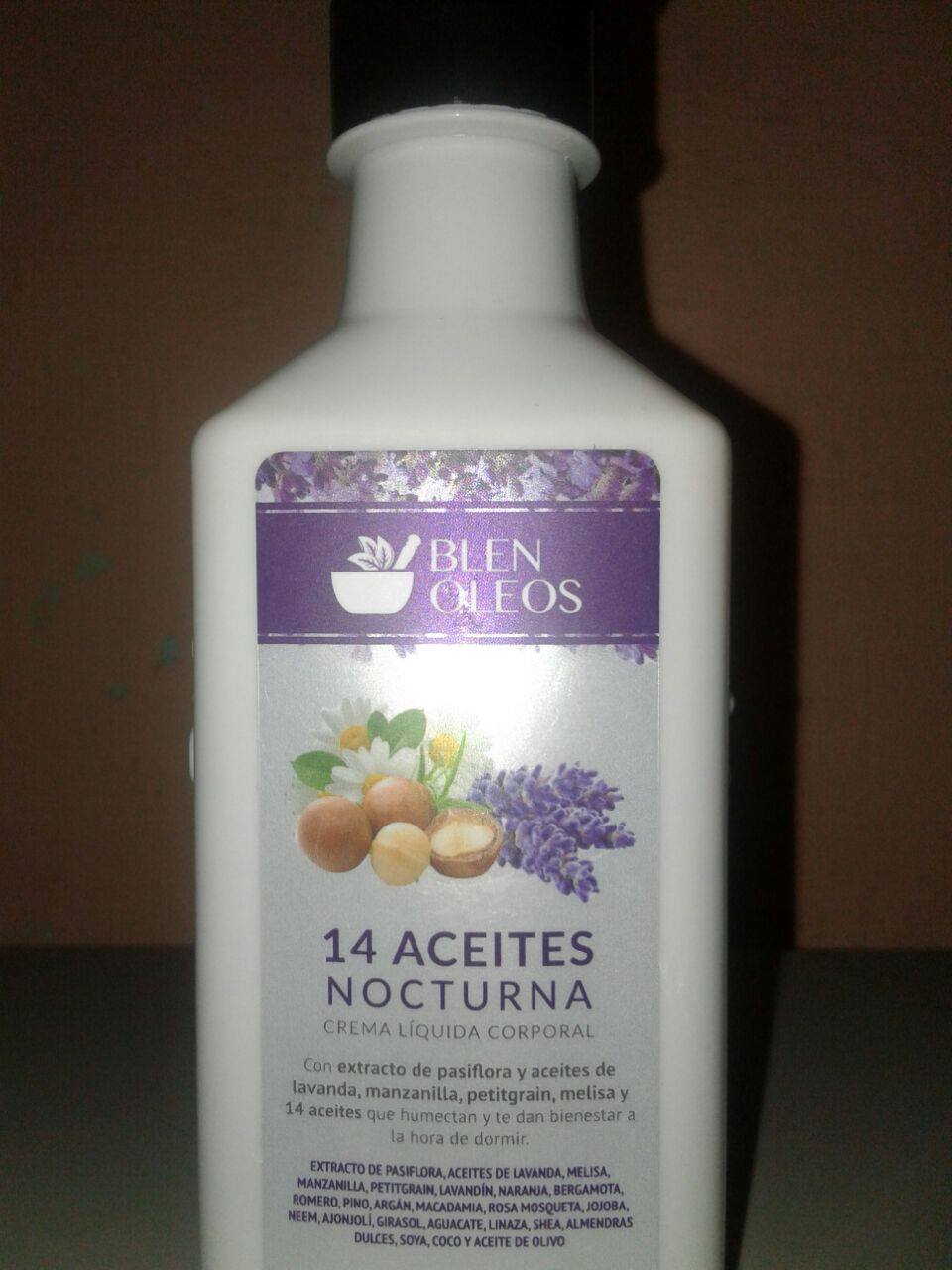 Con extracto de plasifora y aceites de lavanda, manzanilla, petitgrain, melisa y 14 aceites que humectan y te dan bienestar a la hora de dormir.